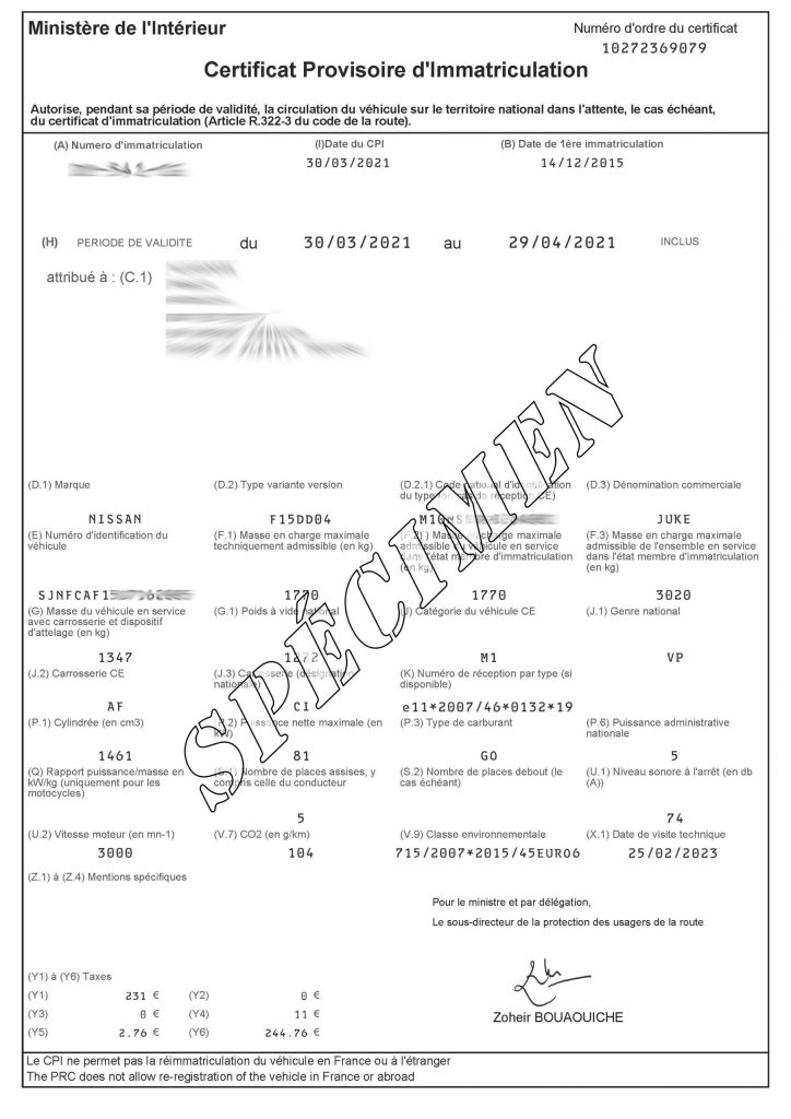 - Demande de certificat d’immatriculation provisoire (CPI WW),