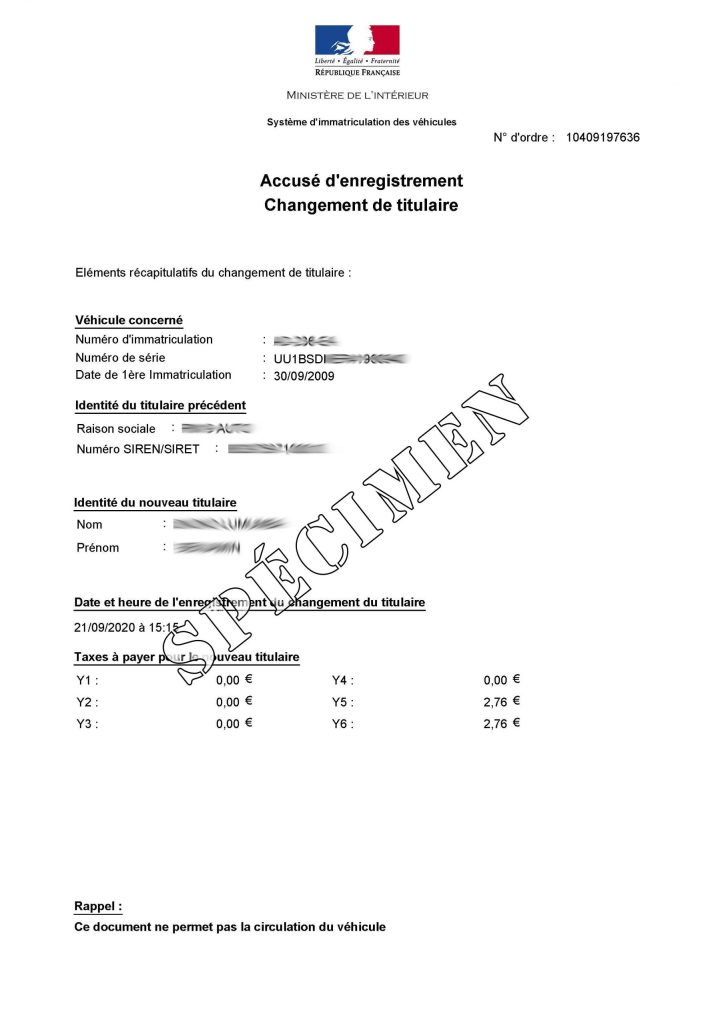 - Recevez votre carte grise : Le jour de la réception de votre dossier d’immatriculation complet, nous vous envoyons un document officiel certifiant le changement de titulaire sur le véhicule : accusé d’enregistrement ou certificat provisoire en fonction de votre véhicule. Vous pouvez circuler en toute légalité. Sous 2-5 jours, vous recevez votre carte grise originale en recommandé directement chez vous (cliquez sur le lien pour effectuer le suivi en ligne de votre carte grise).