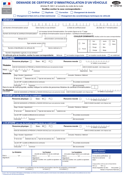 Demande de certificat d'immatriculation