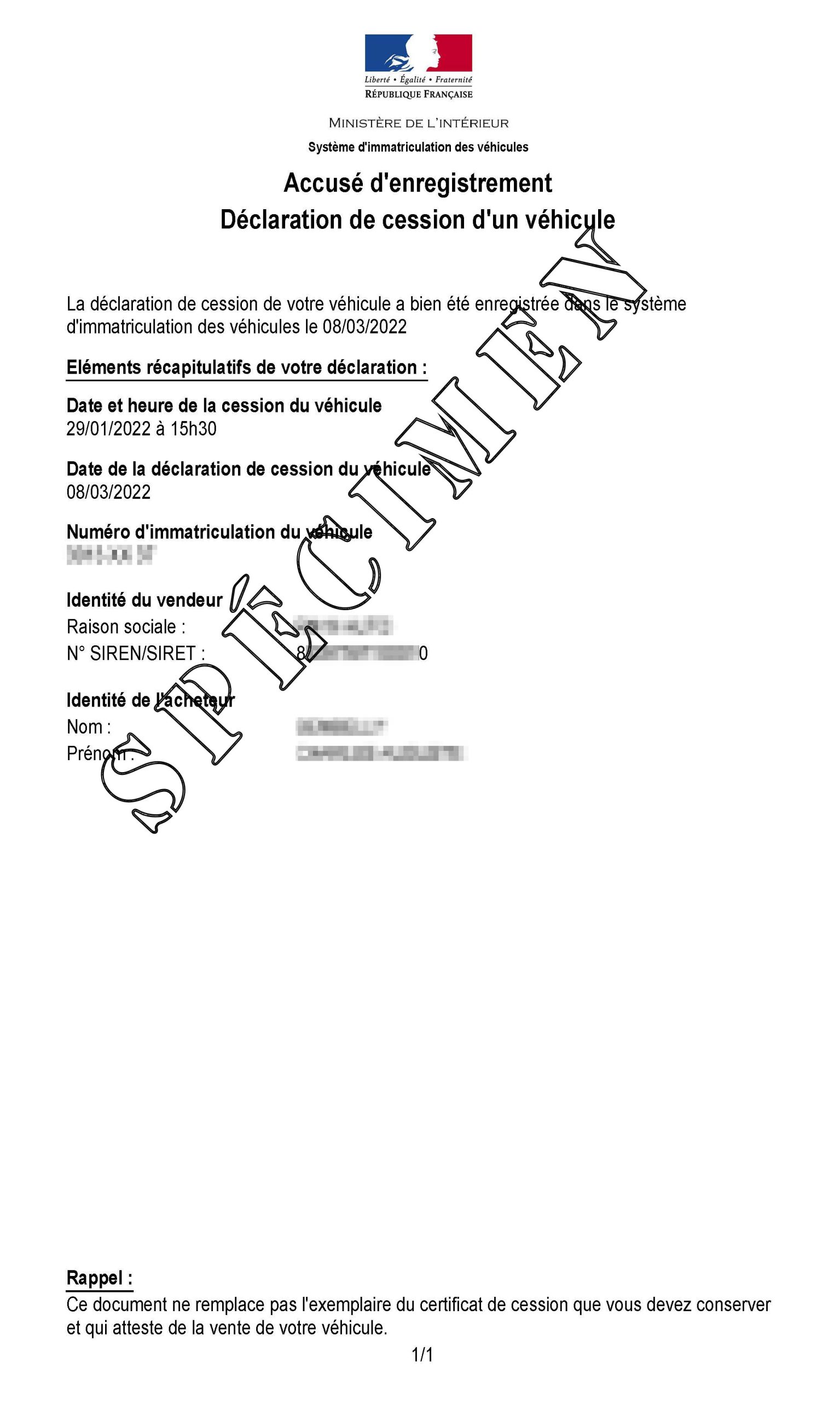 - La copie du certificat de cession dûment rempli sans rature ni surcharge par le vendeur,